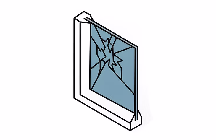- Cracked or broken window glass
